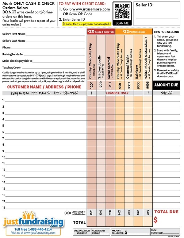 1. Order 1 $20 Cookie Dough order-taker PER fundraising participant – they’re FREE of charge!