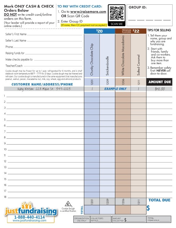 1. Order 1 Crazy About Cookie Dough order-taker PER fundraising participant – they’re FREE of charge!