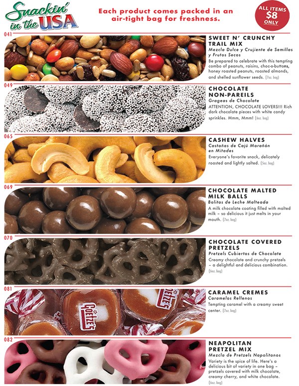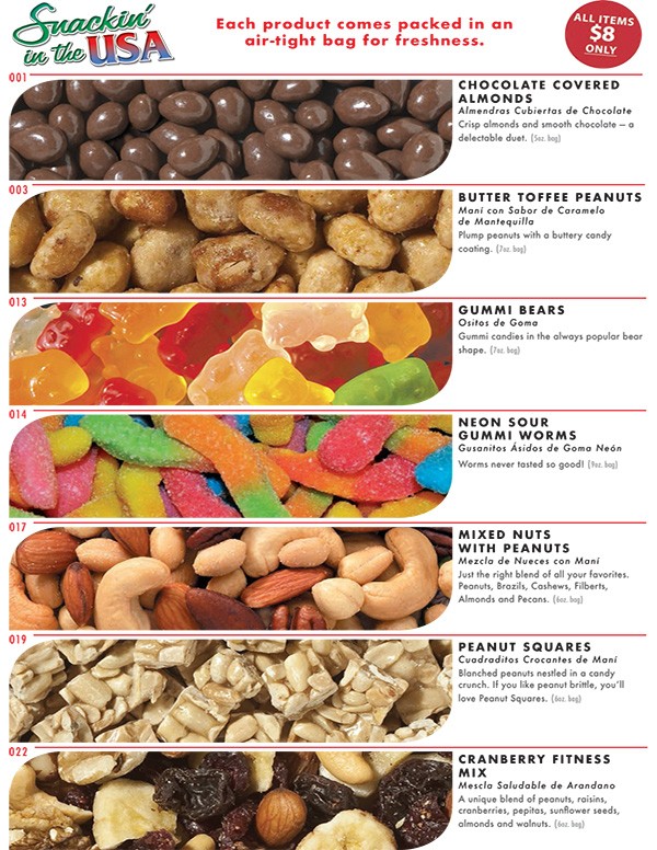 NEW - Perfect for Team Fundraisers! This is the perfect order-taker for sports teams and sports fans! It offers the same delicious selection as Snackin' in the USA, but it is sports-themed to complement your group's team spirit.