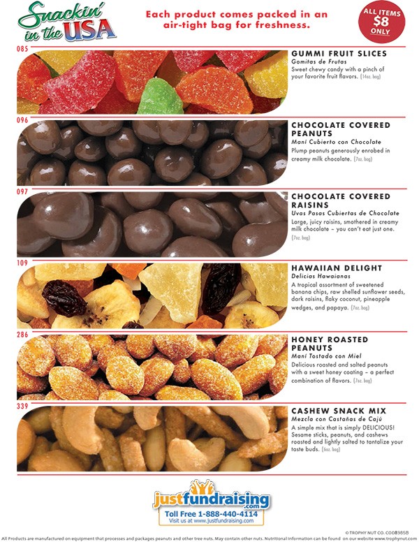 This order-taker offers the very best snacks for athletes and fans alike! Grab a snack before or after your next game, or munch on your favorites while cheering on your favorite team! Your supporters can choose from 20 mouth watering treats all made from premium quality nuts and candies - now that's what we call delectable munching! At only $8 each, many fans will buy several at a time. Your team or group keeps 50% of everything you raise