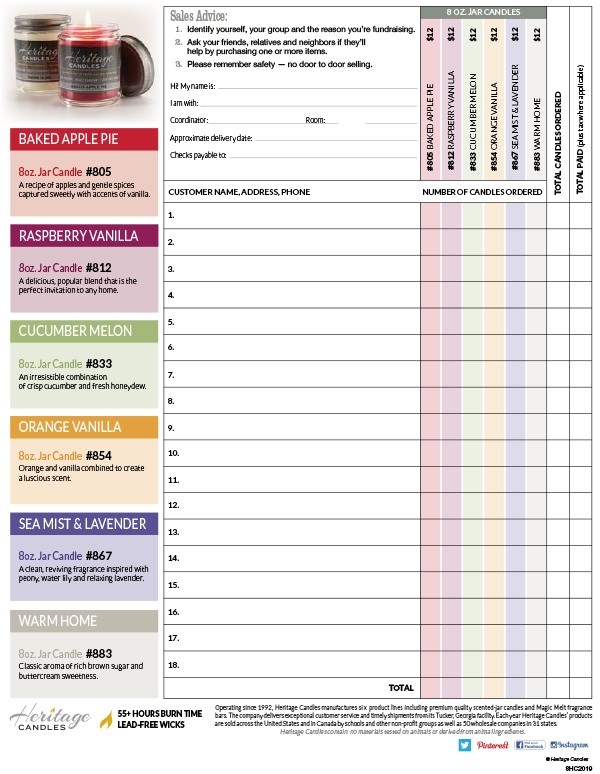1. Order 1 $12 Candle order-taker PER fundraising participant – they’re FREE of charge!