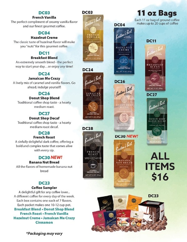 The Ultimate Coffee Collection is a recent addition to our fundraising line-up. Raise money selling Boston's Best award-winning gourmet coffee! Choose from 15 coffee options which are perfect to drink at home or the office. Most people love coffee making it super easy to sell. The coffee comes in a beautiful package. They are available in 11 oz. bags of ready-to-brew ground coffee and also boxed in single-serve brewers, including Keurig K-Cup brewing systems.