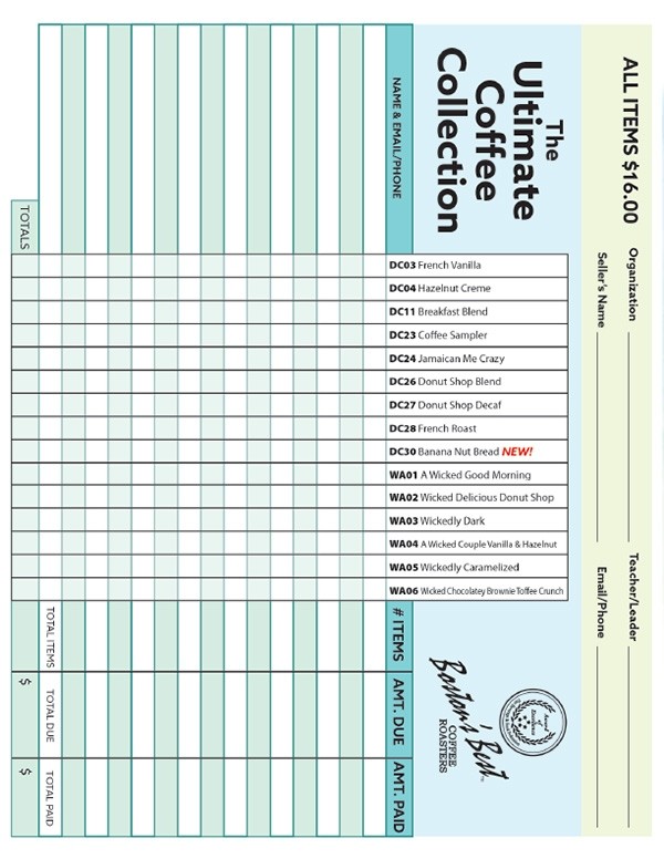 1. Order 1 Ultimate Coffee Collection order-taker PER fundraising participant – they’re FREE of charge!
