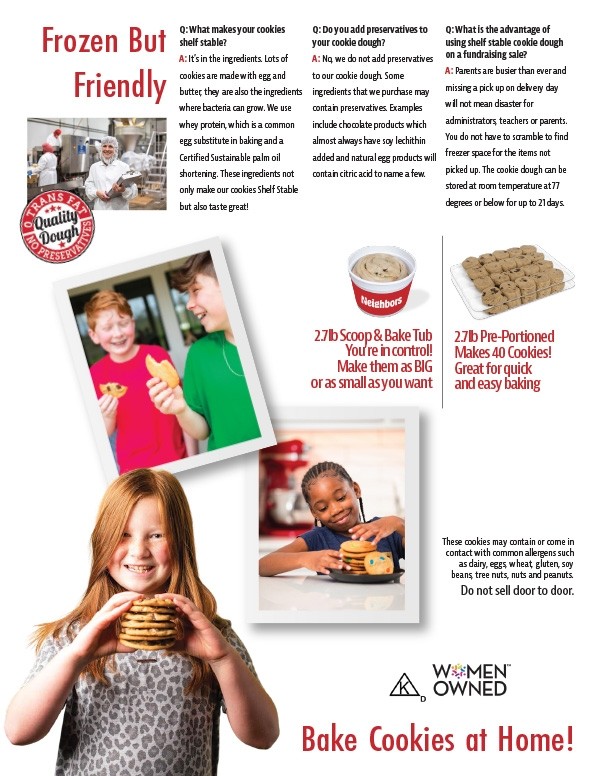 Distribution Day Made Easy: The cookie dough, edible dough and all other items in this order-taker can be kept at room temperature (77 degrees or cooler) for up to 21 days before being refrigerated again, so there’s no need to have parents and volunteers rush in to collect their cookie dough during a tight 2-hour time window.