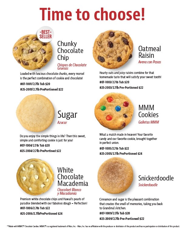 America's Favorite Cookies is the ultimate white glove cookie dough fundraiser designed for larger groups like schools and leagues. Sell 6 delicious treats in 2 different formats - Scoop & Bake and Pre-Portioned! Enjoy our convenient online store with ship-to-home option and free student pre-pack. Let's raise some dough!
