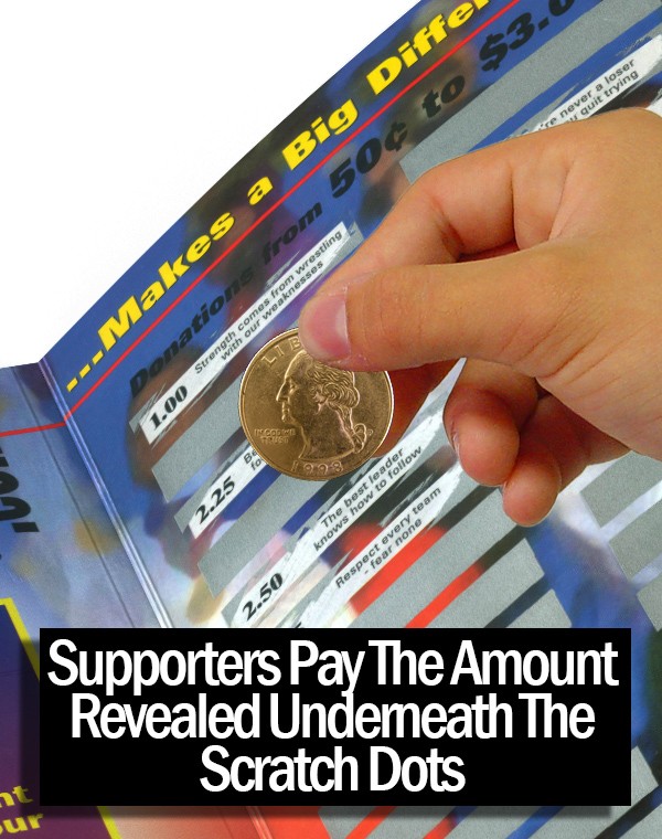 7. Your participants will ask people to scratch and donate to your cause. They must collect their money on the spot.