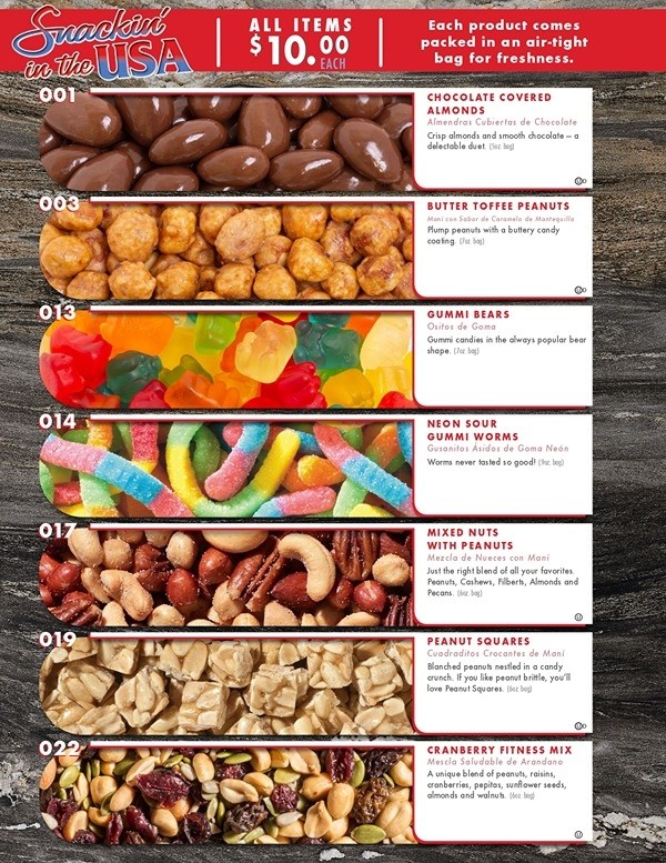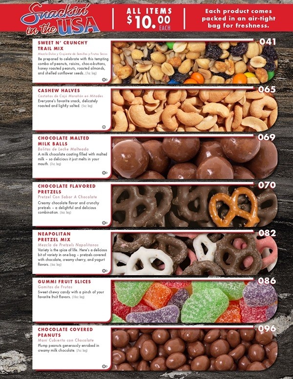 Make your next fundraiser a Snackin' in the U.S.A. one! Snack lovers are sure to find all their favorites here! A mouth watering selection of 20 delicious, sweet snacks and savory treats for only $10 each!